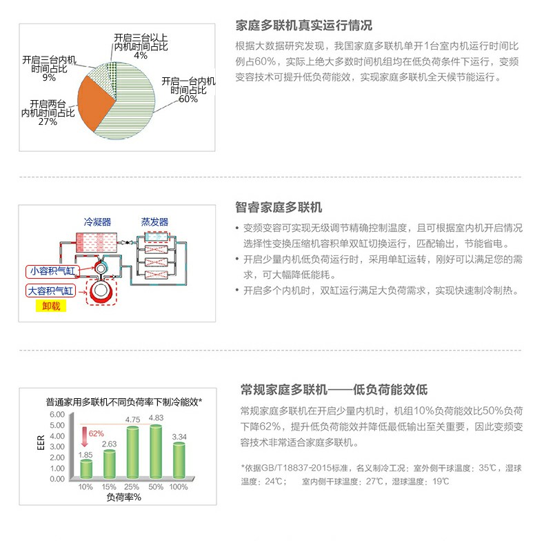 適用于多房間空調(diào)需求的家庭,擁有家用多聯(lián)機低負(fù)荷高效技術(shù)及穩(wěn)定可靠的容積切換技術(shù),有效解決家用多聯(lián)機低負(fù)荷輸出大、能效低問題。